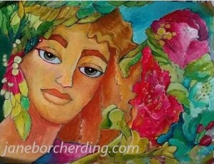 “Shaman’s Blessing” acrylic on paper, 9″ x 12″, 2019