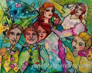 “The Wedding Party” acrylic on paper, 9″ x 12″, 2019