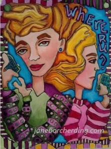 “Where R U?” acrylic on paper, 6″ x 8″, 2019
